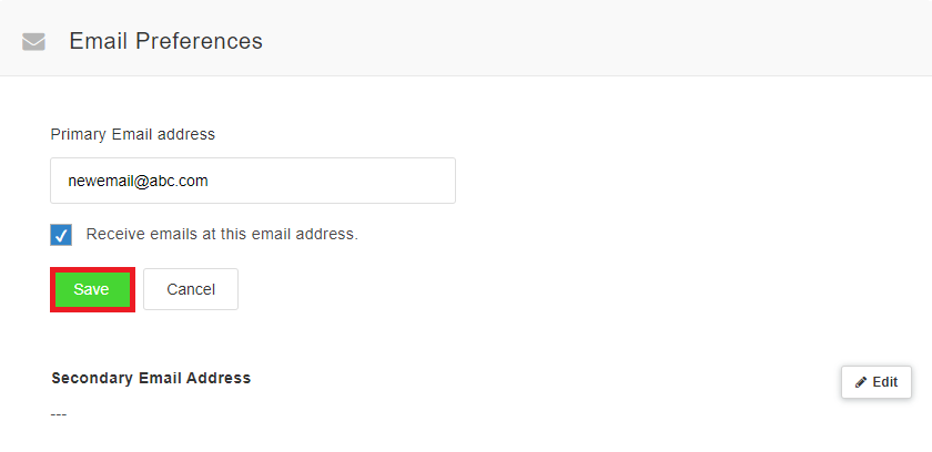 2. In Email settings, update the new email address and select "Save". To add a secondary email